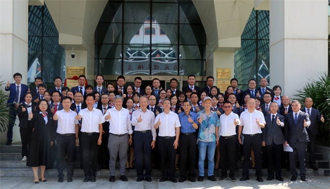 2023年8月16日下午,廣西中馬欽州產(chǎn)業(yè)園區(qū)開發(fā)有限公司舉行廣西孔雀灣建設(shè)工程有限公司揭牌儀式。自貿(mào)區(qū)欽州港片區(qū)管委副主任李從佳、合資公司馬方股東馬來西亞常青集團(tuán)董事經(jīng)理拿督張?zhí)┣?、合資公司董事蔡天佑、總裁肖源共同為建設(shè)工程公司揭牌。管委對外合作交流局局長莊嚴(yán)、社會事務(wù)局協(xié)理局長莫鑒賢、馬來西亞Arkitek KDI有限公司拿督斯里劉嘉銑、常成集團(tuán)執(zhí)行長拿督鄭義茂,以及合資公司及建設(shè)工程公司全體員工參加了揭牌儀式。